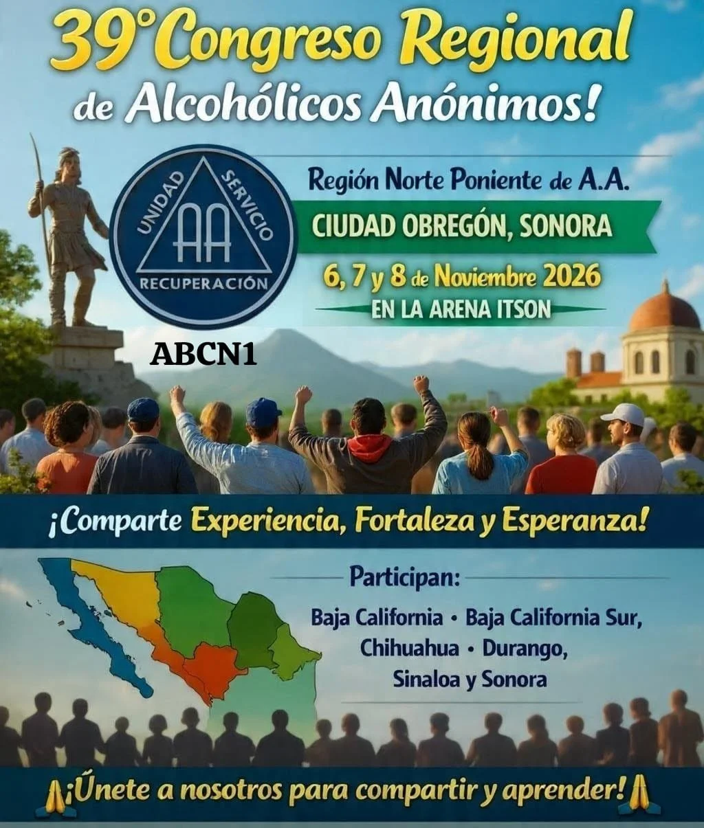 Region Norte Poniente de AA, Ciudad Obregon Sonora. 6, 7 y 8 de Noviembre 2026 En la Arena Itson.